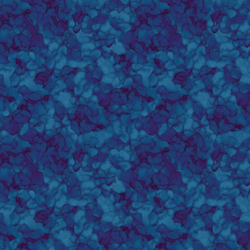 This fabric features a captivating design of overlapping petal-like shapes in various shades of blue, creating a mosaic effect that is both modern and elegant. The deep navy base color is accented with lighter blues, giving the fabric a dynamic and textured appearance. Ideal for a variety of sewing projects, this cotton fabric provides a rich depth of color and a soft, comfortable feel.